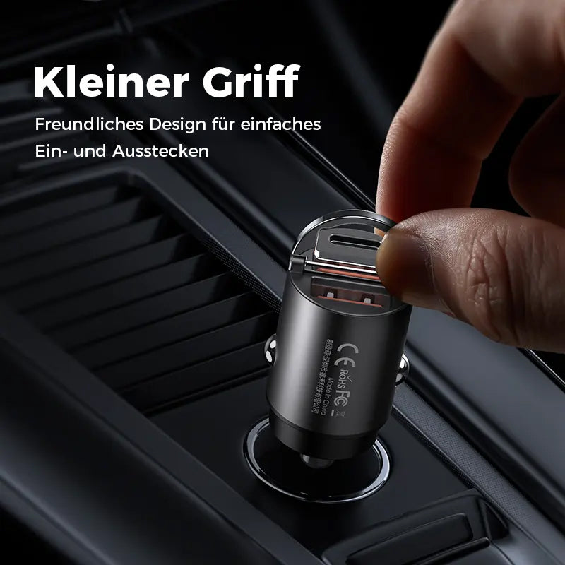 • 【Gleichzeitiges Aufladen von zwei Geräten】 - Das Autoladegerät kann zwei Geräte gleichzeitig aufladen. Das Schnellladen wird unterstützt, wenn zwei Geräte gleichzeitig geladen werden.