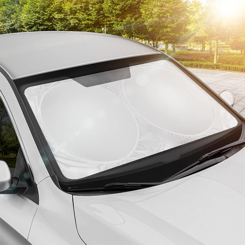 • Einfache Verwendung: Die Verwendung unserer Auto-Sonnenblende ist mühelos. Klemmen Sie einfach die beiden Ringe an die Frontscheibe, und sie bleibt sicher an Ort und Stelle. Keine komplizierten Installationen oder Klebstoffe erforderlich.