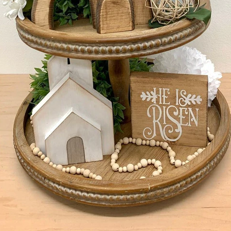 Frohe Ostern! Er ist auferstanden! Dekorieren und feiern Sie die Auferstehung Christi mit diesem wunderschönen gestuften Tablettdekor.