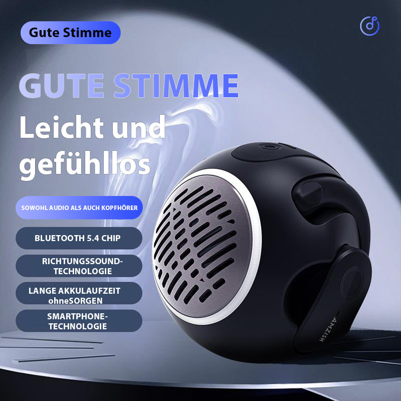 • 2-in-1-Funktionalität: Genießen Sie die Flexibilität eines kabellosen Lautsprechers, der sich nahtlos in einen offenen Bluetooth-Kopfhörer verwandelt, perfekt für Musikliebhaber unterwegs.
