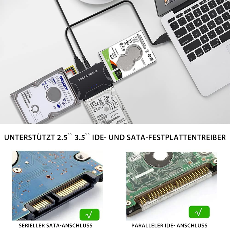 • 3-in-1: Kann 3 Festplatten gleichzeitig verbinden und darauf zugreifen