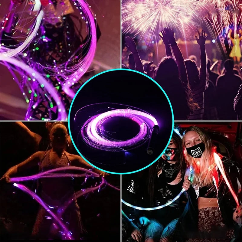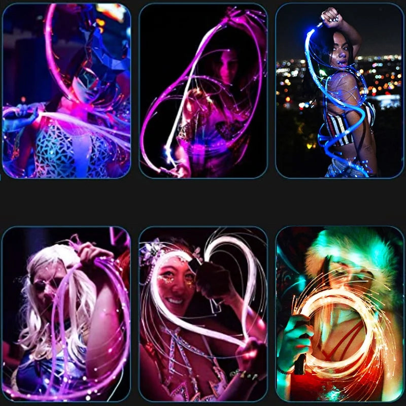 • 🤡Die LED-Glasfaserpeitsche ist wiederaufladbar und bietet verschiedene Modi und Lichteffekte für verschiedene Tanzaufführungen