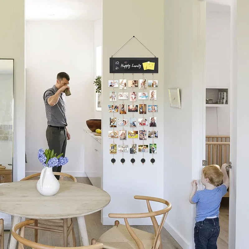 • 🐬Perfekte Möglichkeit, mehrere Fotos anzuzeigen: Einfache Collage-Fotorahmen mit 30 Clips, 5 Hanfseilen, 3 Magneten und 1 Tafel. Sie können die Länge des Hanfseils nach Belieben zuschneiden, was einem einfachen DIY-Design gerecht wird. Darüber hinaus ist es mit den 30 Clips einfach, das Bild oder die Karte zu wechseln.