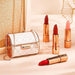 Die Lippenstift-Kettentasche besteht aus drei matten Lippenstiften und einem farbwechselnden Lippenbalsam.