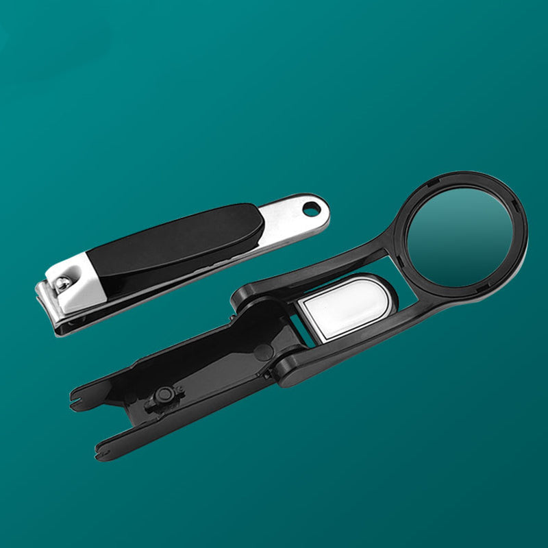 Tragbarer Nagelknipser aus rostfreiem Stahl mit einer sekundären Schneidkante zum einfachen Schneiden dicker Nägel und einem Design gegen Nagelspritzer.