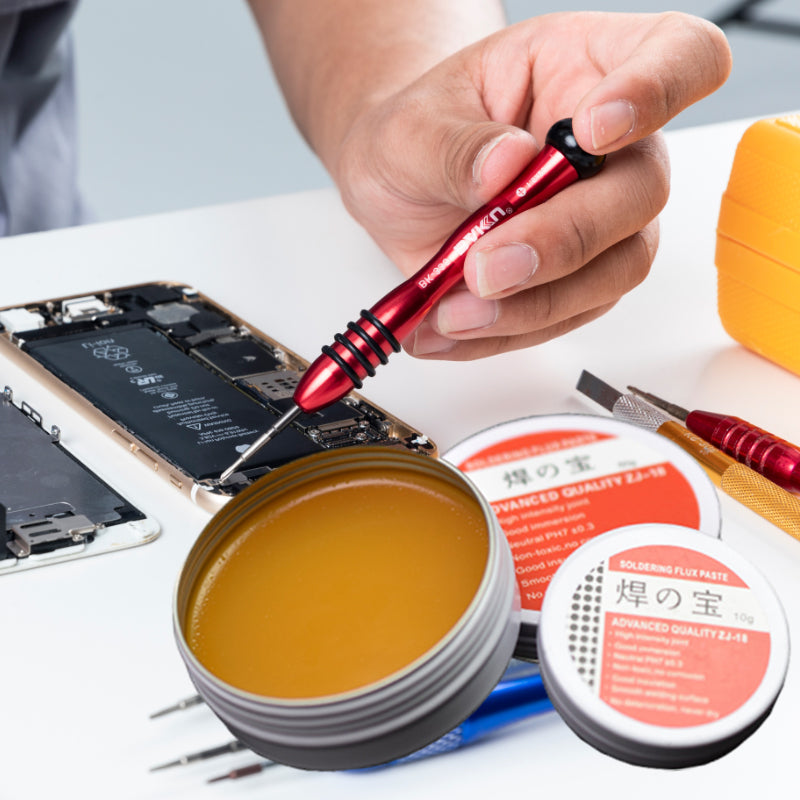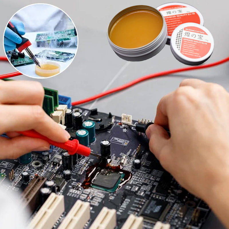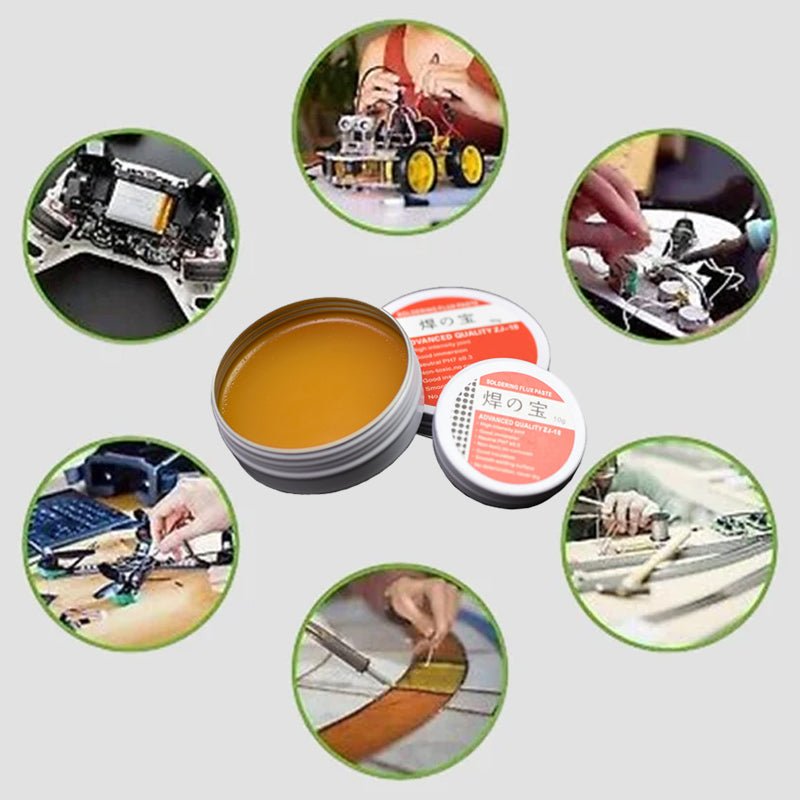 • Vielfältige Anwendungen - Unser Flussmittel, das auf unterschiedliche Bedürfnisse abgestimmt ist, eignet sich für eine Vielzahl von Anwendungen. Vom Löten von Motherboards bis zur Reparatur elektronischer Komponenten, Drähte und Mobiltelefone - seine Vielseitigkeit macht es zu einem unverzichtbaren Werkzeug für Elektronikliebhaber, Hobbyisten und Profis.