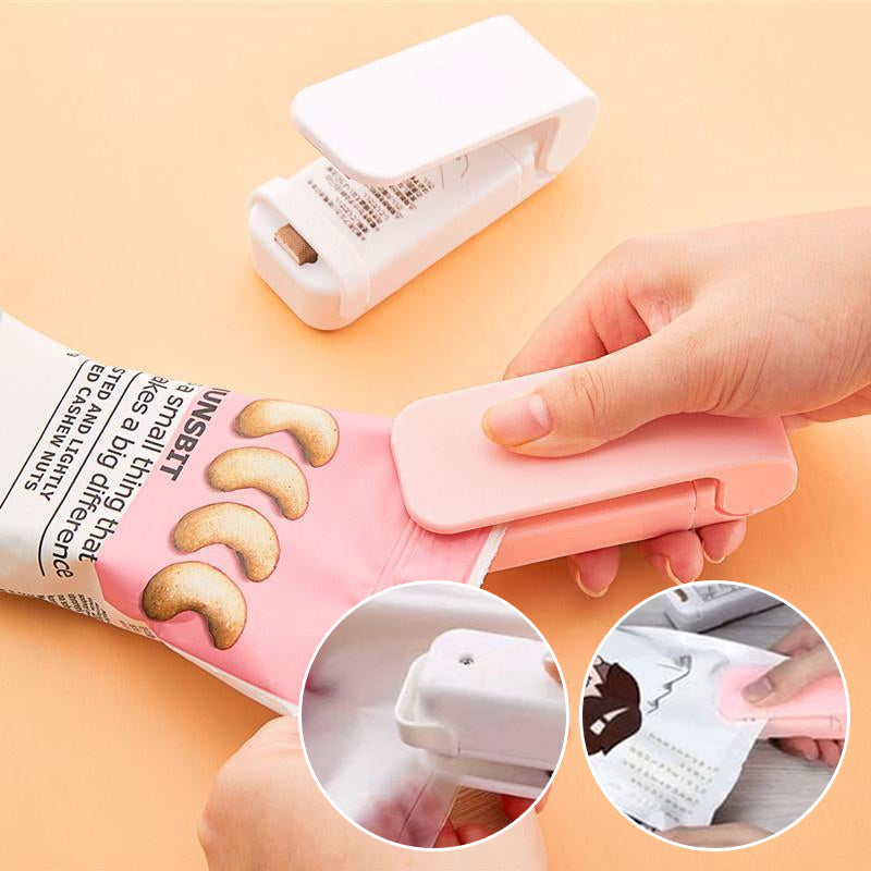 Diese tragbare Mini-Heißsiegelmaschine hilft dabei, alle Lebensmittel (Lebensmittel, Chips, Süßigkeiten, Snacks, Essensreste)  FRISCH und TROCKEN zu halten.