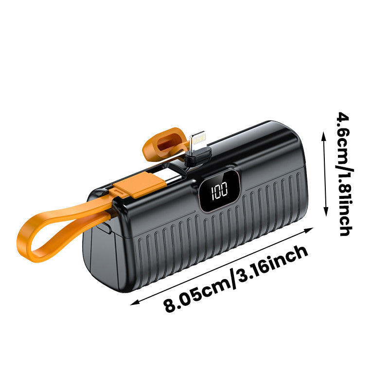 • 5000 mAh Powerbank mit großer Kapazität, die Powerbank hat ein eingebautes Ladekabel und kann drahtlos oder kabelgebunden aufgeladen werden, was sie noch praktischer macht.