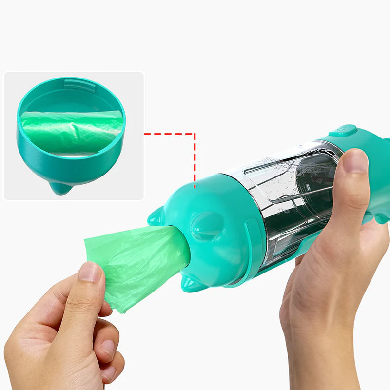 • 4-in-1-Design: Entwickelt für die Einhandbedienung. Ein Fach enthält Wasser, das zweite Fach enthält Lebensmittel und das andere enthält Kotbeutel. Es gibt auch eine kleine Schaufel, mit der man den Kot aufsammeln kann.