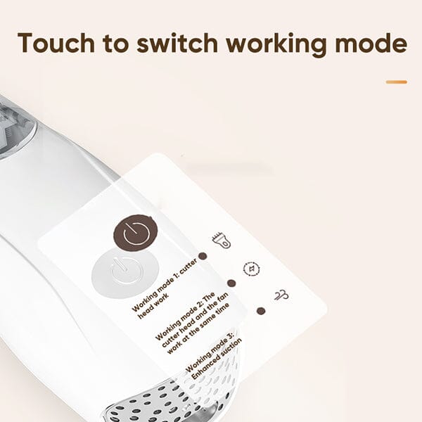 • Vielseitige Geschwindigkeitseinstellung: Der Haarschneider bietet drei Geschwindigkeitseinstellungen, um unterschiedlichen Pflegeanforderungen gerecht zu werden. Im ersten Modus wird die Klinge betätigt, im zweiten Modus werden sowohl die Klinge als auch der Ventilator aktiviert und im dritten Modus wird die Saugleistung für eine effiziente Haarsammlung erhöht.