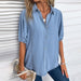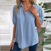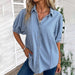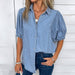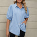 Hellblaue Bluse mit halblangem Hemdkragen und Knöpfen