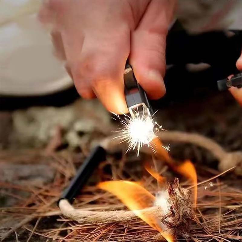 • Das Armband wird mit einem 0,5-Zoll-Stahlschaber geliefert, um die schwarze Beschichtung des Magnesiumfunkenstocks abzukratzen. Ein Schlag auf Feuerstein erzeugt einen Funken, um ein Feuer zu entfachen, das Wärme und Schutz in Notfällen bietet. Wasserdichtes Design, kann in feuchter Umgebung normal verwendet werden.