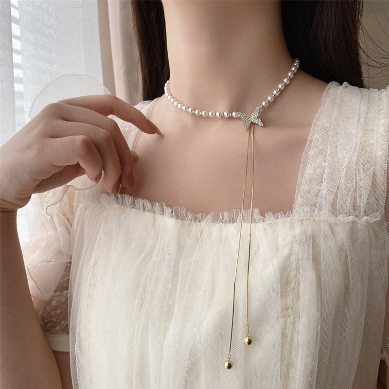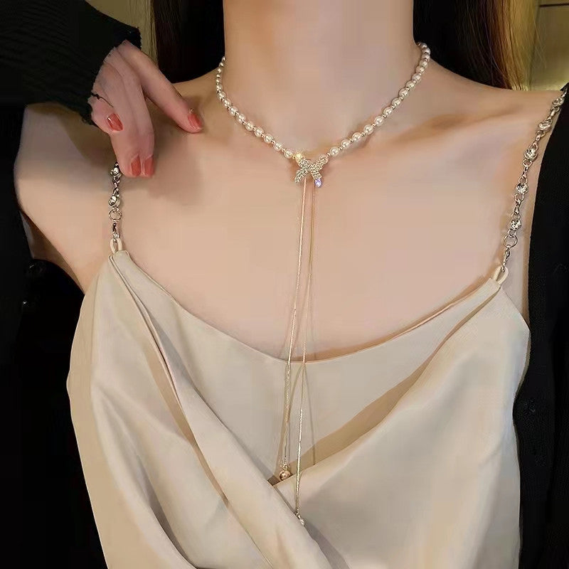 • ✔Paket: 1x Perlen- und Diamant-Schmetterlingshalskette