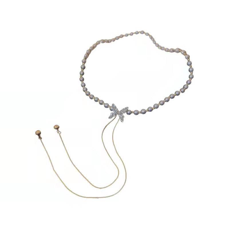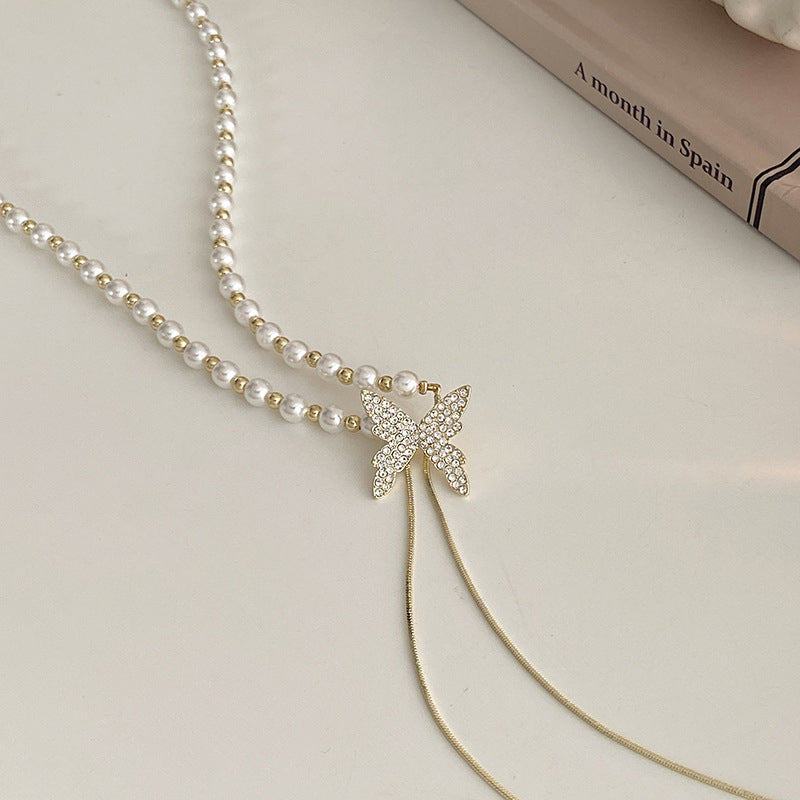 Perlen- und Diamant-Schmetterlingshalskette