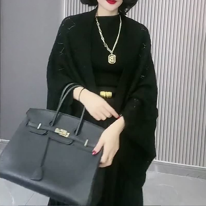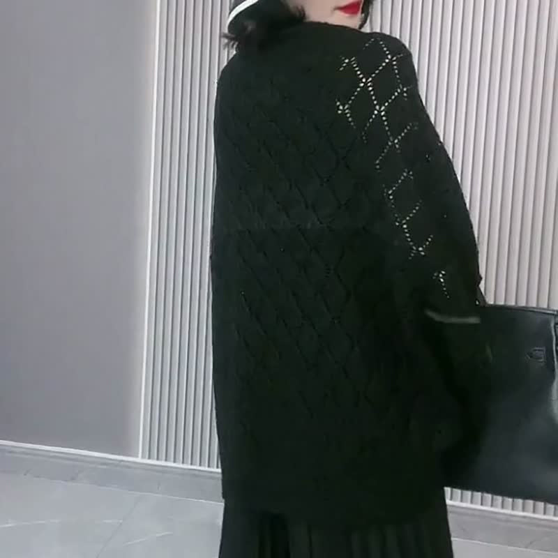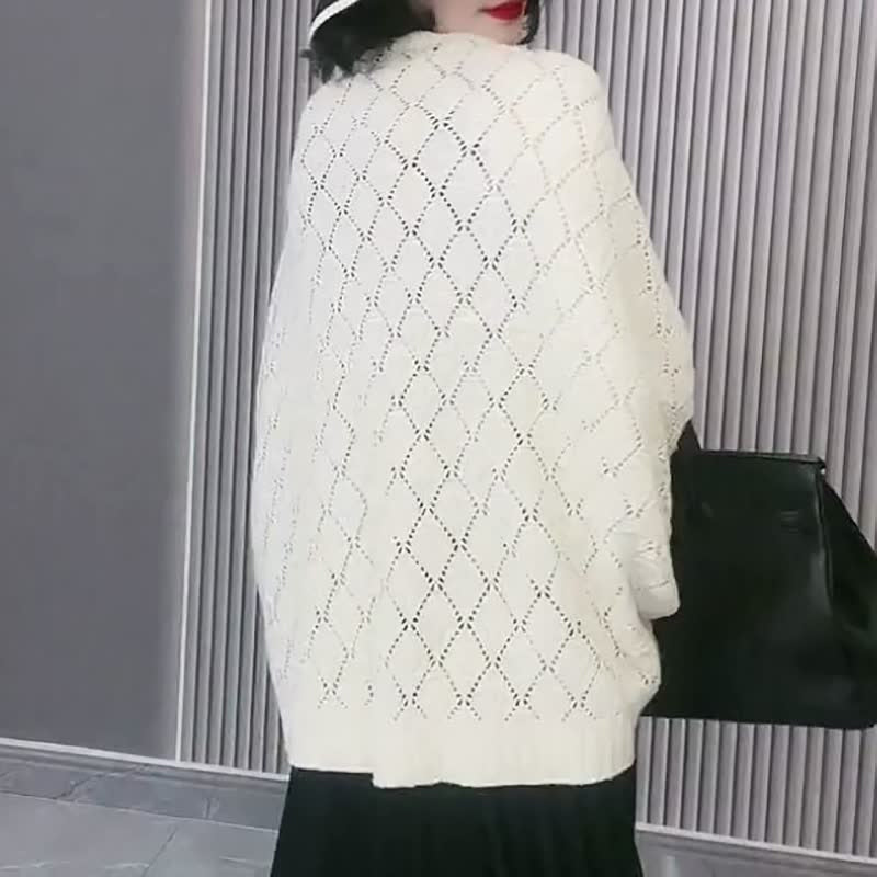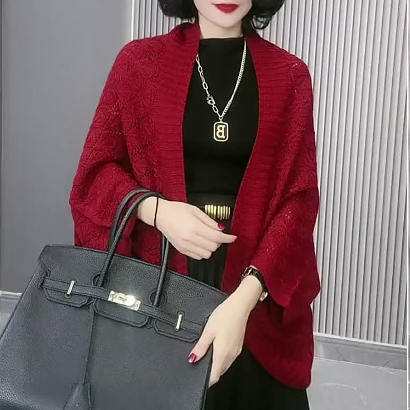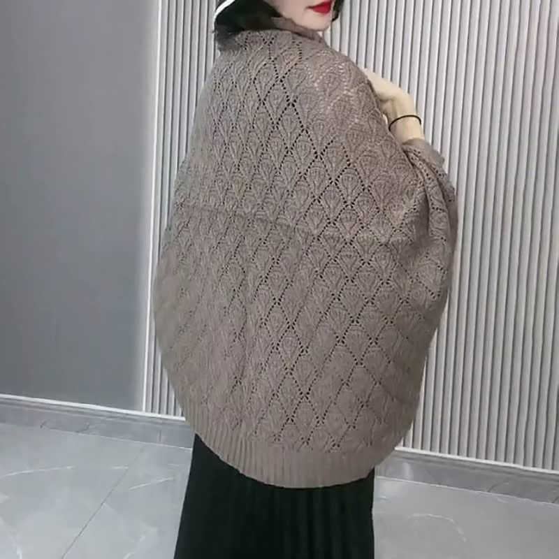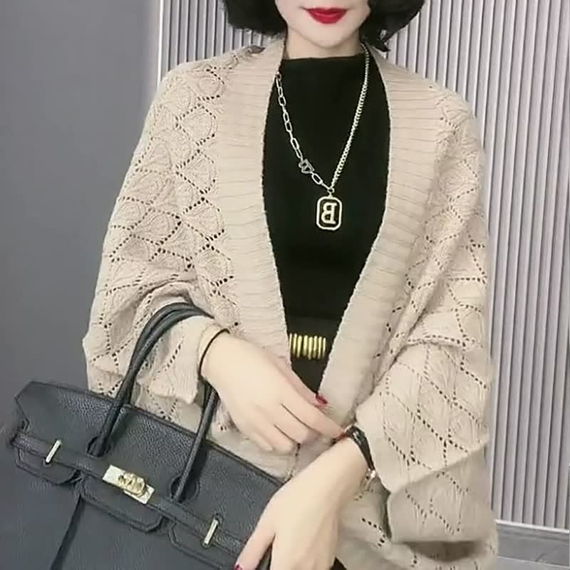 Eigenschaften: Weite Fledermausärmel, Häkelstrick, Atmungsaktiver Mesh-Hohlschnitt, Klassische Volltonfarbe, Gerippter Saum, Hautfreundlicher Stoff, Übergroße Strickjacke.