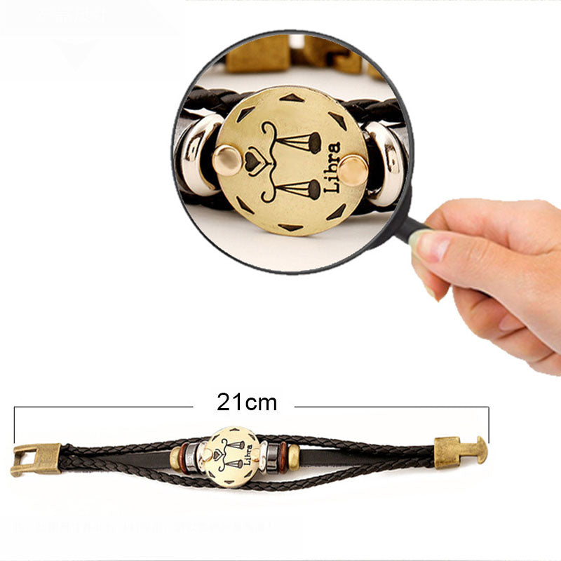 • Wir stellen Ihnen unsere exquisite Kollektion handgefertigter gewebter Armbänder vor, die sorgfältig entworfen wurden, um die 12 Sternzeichen darzustellen. Jedes Armband dieser Kollektion ist sorgfältig aus hochwertigem Rindsleder gefertigt und verfügt über aufwendige Handwebtechniken, wodurch ein wirklich außergewöhnliches Accessoire entsteht, das Ihr individuelles Sternzeichen feiert.