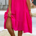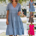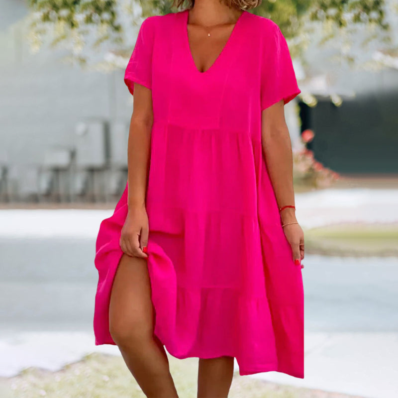 Einfarbiges Kleid aus Baumwollleinen mit V-Ausschnitt