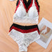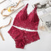 Kabelloser BH aus kontrastierender Spitze und Panty mit Schleifenverzierung für Frauen