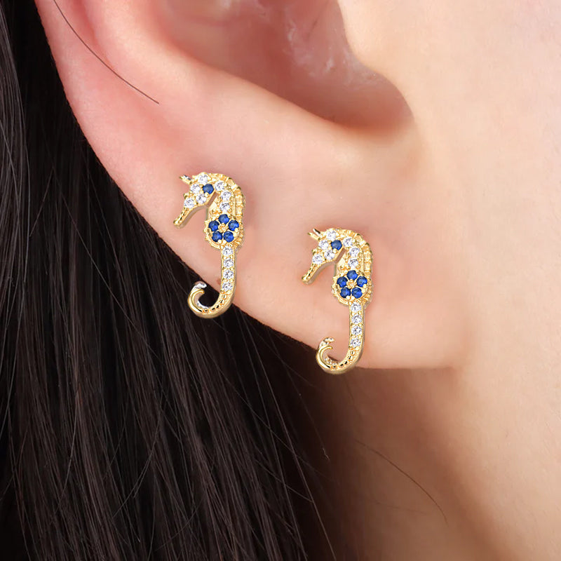 • Freundlich: Unsere magischen Seepferdchen-Ohrstecker zaubern jedem ein Lächeln ins Gesicht! Die Seepferdchen-Modellierung wurde mit einem Vergoldungsprozess gefertigt und wird perfekt durch wunderschöne Kristallmosaiken ergänzt. Es ist ein bezaubernder Look, der nicht zu übersehen ist.