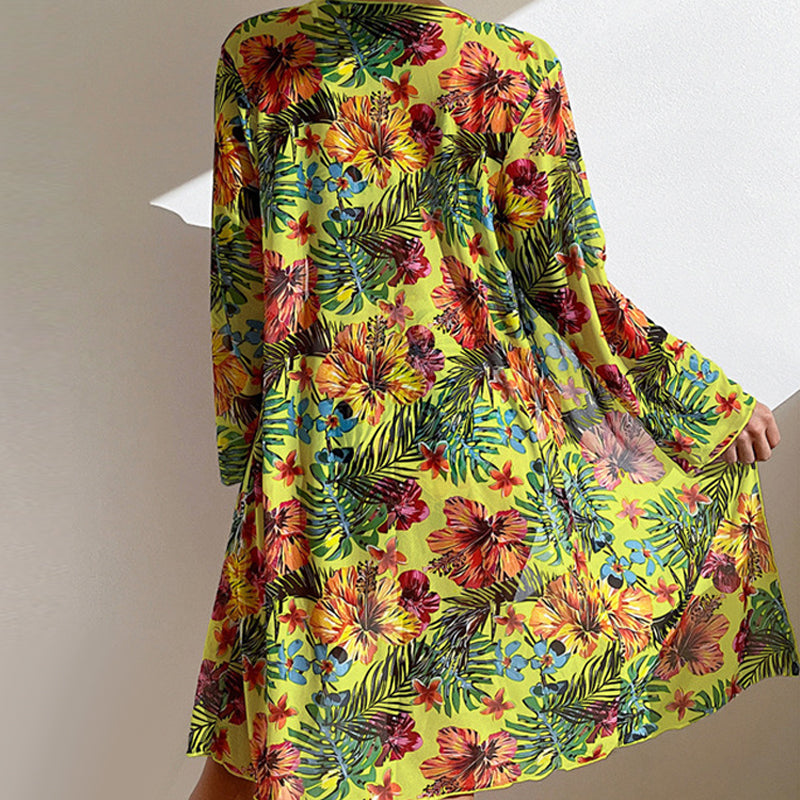 Dreiteiliges Bikini-Set mit Blumen