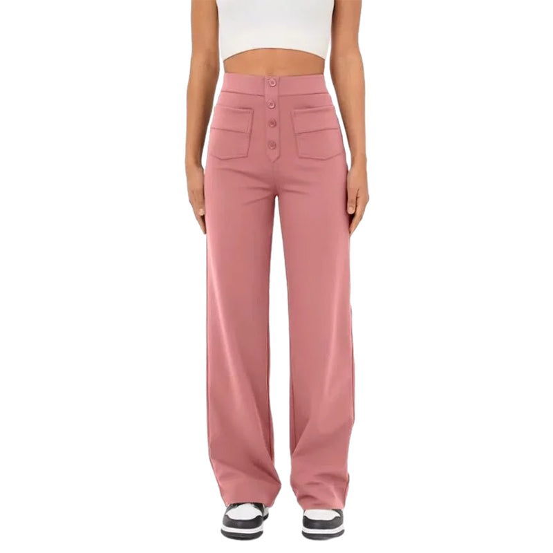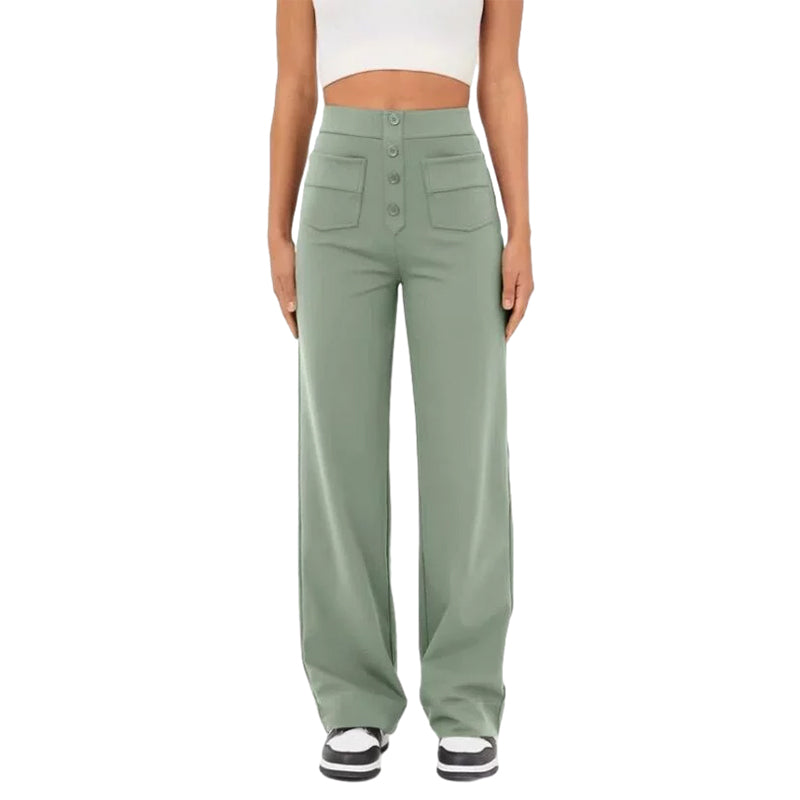 •  1 * Weite Hose mit hoher Taille und Knopfleiste