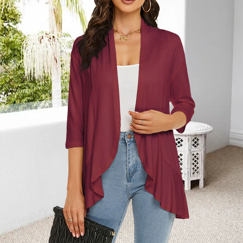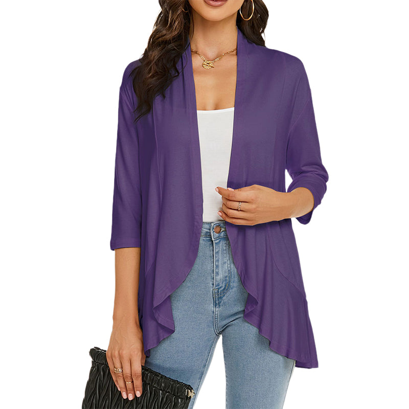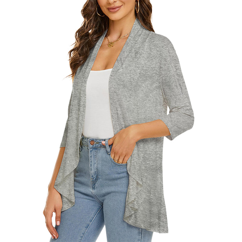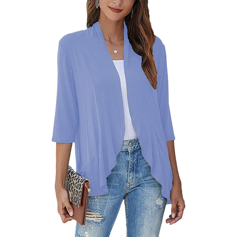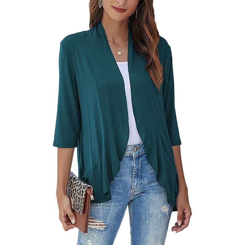 • 😃 Modedesign: 3/4-Ärmel, unregelmäßiger Saum, offenes Vorderteil, kurz, schmeichelhaft, einzigartig, dehnbar, lässig und leichte Cardigans für Frauen. Diese Art von kurzem Cardigan ist nicht zu schwer und das ganze Jahr über geeignet.