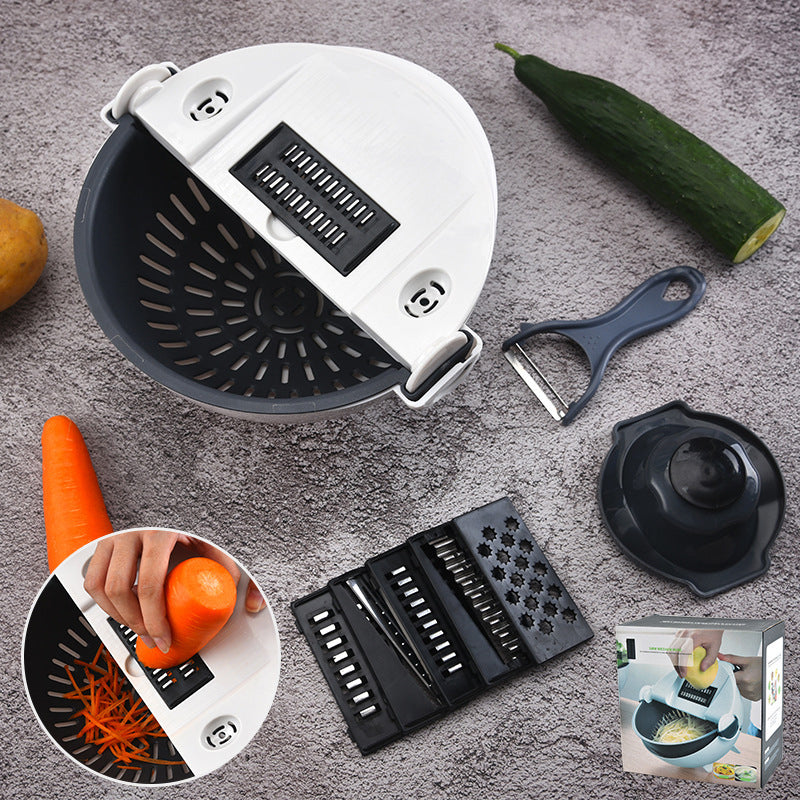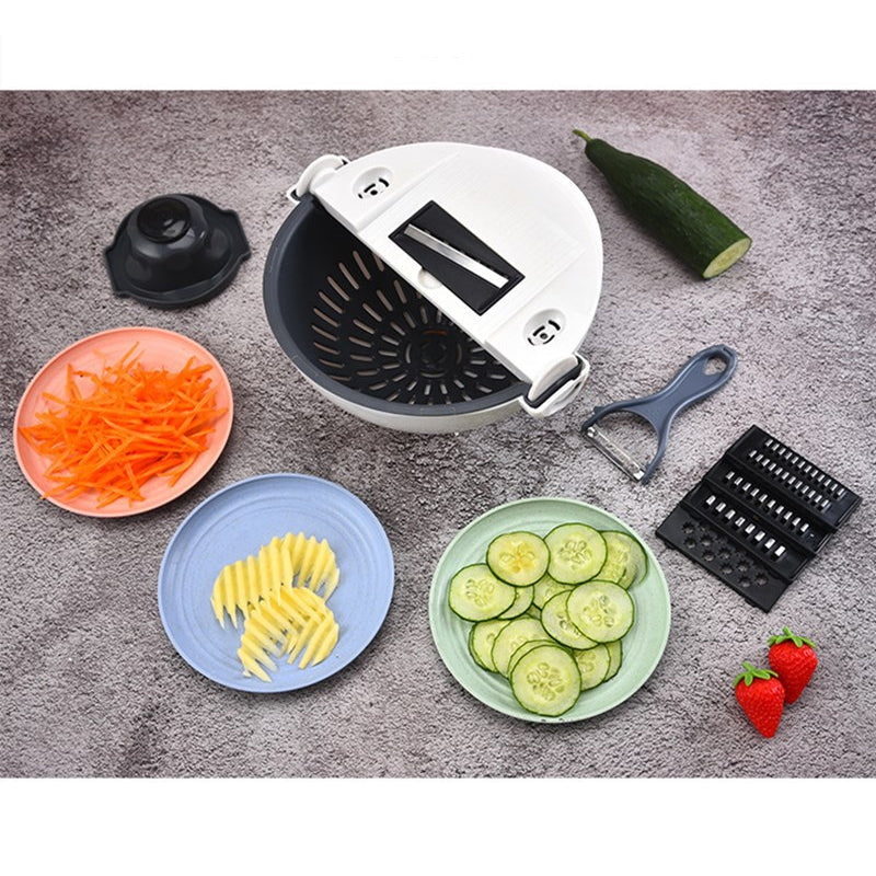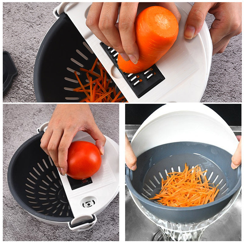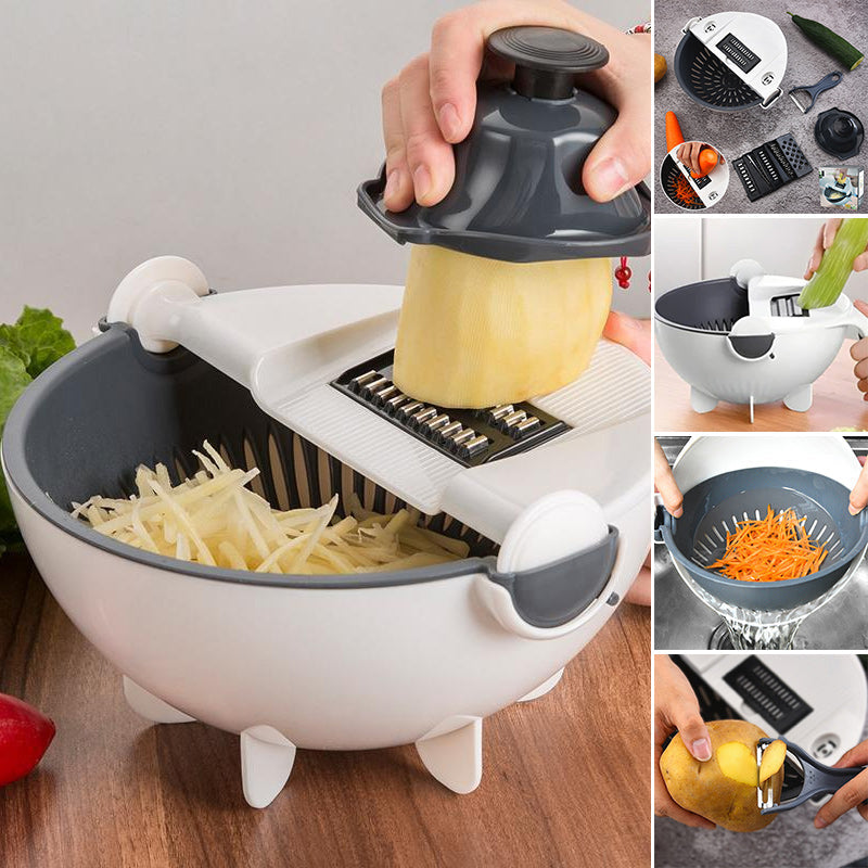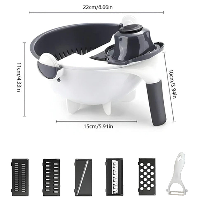 • ⭐Gemüseschneider - 7-in-1 Multifunktions-Magic-Rotate-Gemüseschneider mit Abtropfkorb Große Kapazität⭐