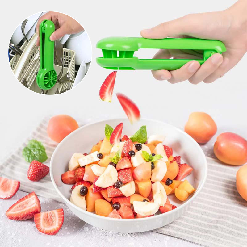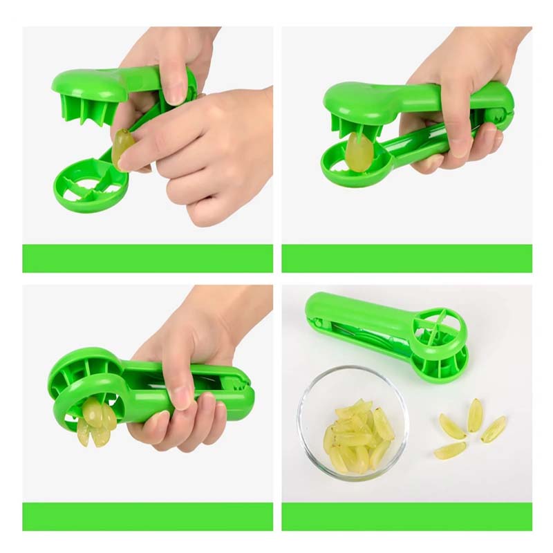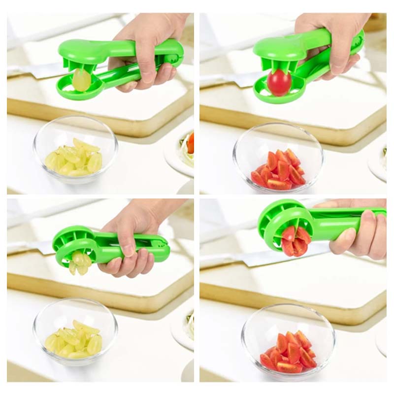 • Einfach zu bedienen: Legen Sie einfach die Trauben in den Schneider und drücken Sie die Griffe zusammen, um gleichmäßig große Scheiben zu schneiden.
