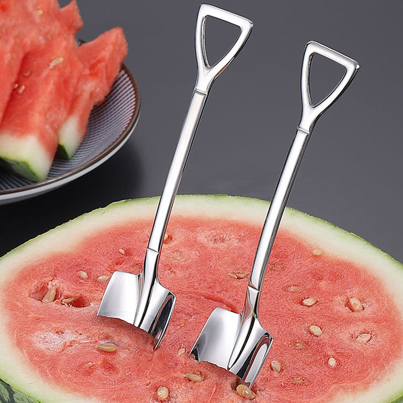Niedliches schaufelförmiges Design, Edelstahl-Rührlöffel, langlebig, elegante Hochglanzpolitur. Es ist außerdem pflegeleicht, spülmaschinenfest und leicht zu reinigen.