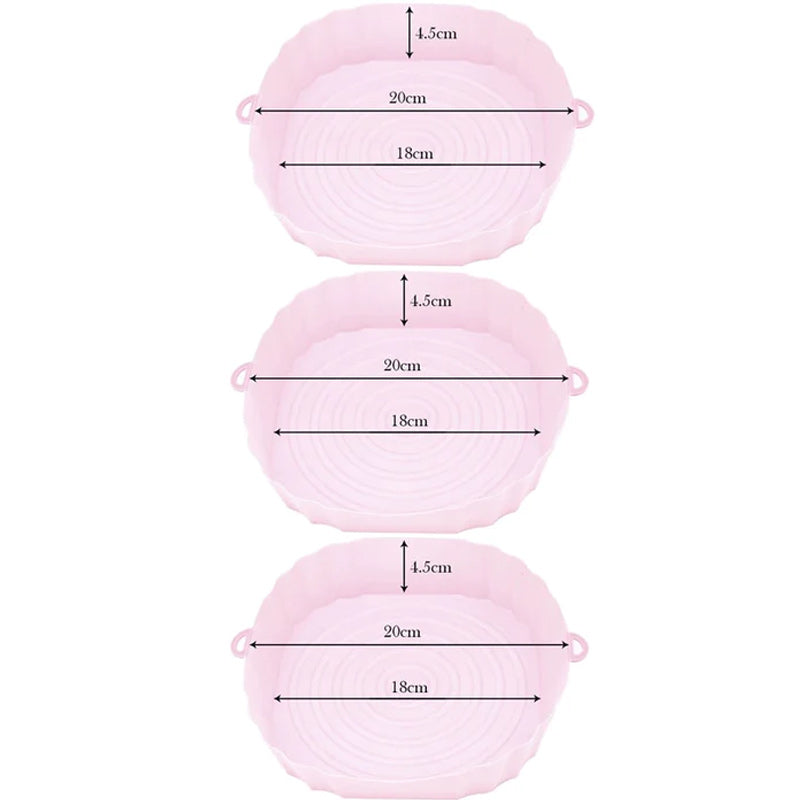 • Unser für dauerhafte Silikonschalen für Luftfritteusen wurde entwickelt, um Ihnen Zeit zu sparen, indem Sie das Fett und den Schmutz entfernen, die sich im Inneren der Luftfritteuse angesammelt haben.
