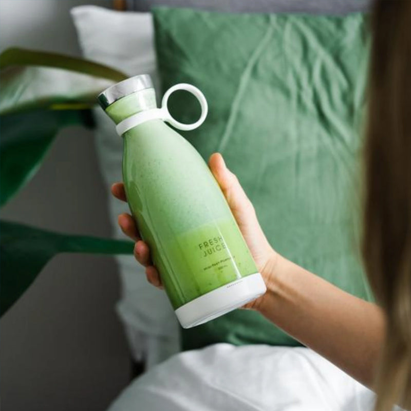 Ausgestattet mit einem leistungsstarken 50W-Motor können Sie mit dieser persönlichen Flasche problemlos gefrorenes Obst, Eiswürfel, grob geschnittenes Obst und Fruchtgemüse mixen. In nur wenigen Sekunden ist alles nach Ihren Wünschen gemixt. Dieser tragbare Mixer ist mit 4 Edelstahlklingen ausgestattet. Durch den kabellosen Einsatz können Sie Ihre frischen Säfte, Gemüsesuppen, Smoothies und Milchshakes optimal zubereiten. Nach Gebrauch lässt es sich leicht abspülen. Lassen Sie es einfach unter Wasser laufen und es ist sauber und wieder einsatzbereit.