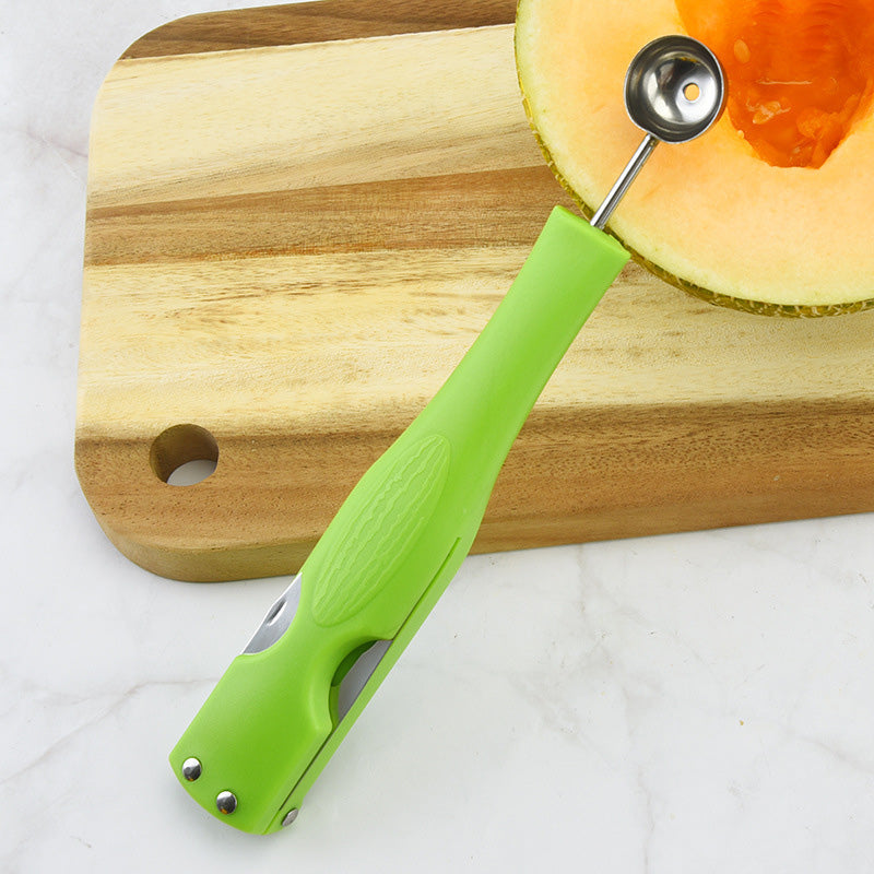 • Freundlich - Unser Multifunktions-Fruchtschneider ist mit einer speziellen gebogenen Löffelform ausgestattet, um das kugelförmige Fruchtfleisch einfach und sicher auszuschöpfen. Das ungiftige Edelstahlmaterial sorgt für Ihre Sicherheit und Ihr Vergnügen bei der Zubereitung Ihrer Lieblingsfrüchte!