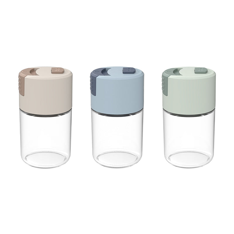 Der Salzspender besteht aus hochwertigem Glas, wodurch Sie frische Gewürze schmecken können, und der moderne PP+ABS-Deckel bringt ein frisches und hochwertiges Design und rostet nicht. Es enthält kein BPA und ist ungiftig.