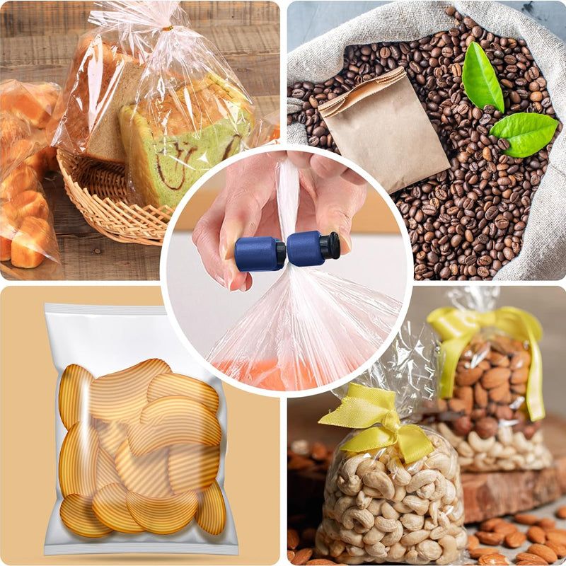 • Einfach zu bedienen:  Das Verschließen von Brotbeuteln, Einkaufstüten und sogar Tiefkühlkostbeuteln dauert nur 2 Sekunden. Gleichzeitig gibt es sichere und durchdachte Gummimaterialien mit guter Anti-Rutsch-Wirkung auf der Ober- und Unterseite, um die Bedienung mit den Fingern zu erleichtern, und normale Menschen können es einfach und sicher bedienen.