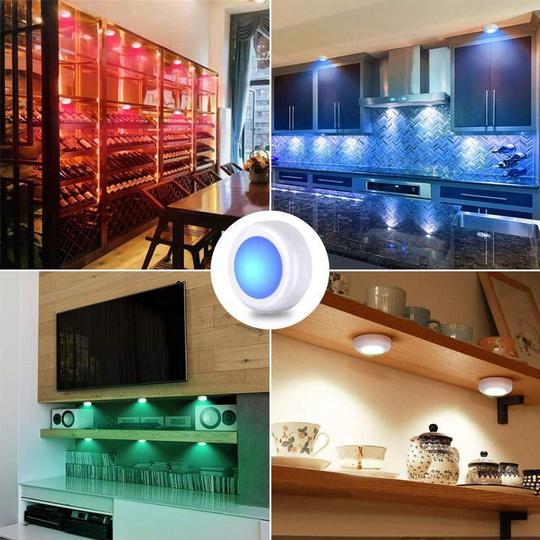 Farbwechselnde LED-Leuchten sind die perfekte Möglichkeit, überall in Ihrem Zuhause stimmungsaufhellende, farbige Lichter zu erzeugen. Da sie vollständig batteriebetrieben sind und keine Kabel haben, um die man sich kümmern muss, könnte die Installation nicht einfacher sein. Kleben Sie sie einfach auf eine glatte Oberfläche und sie sind einsatzbereit.