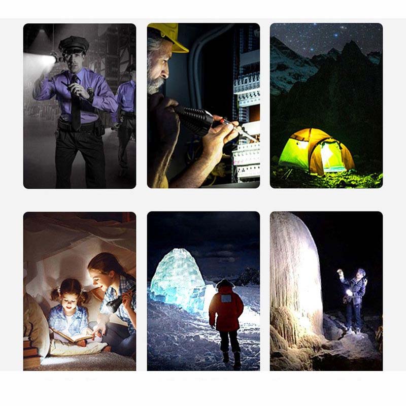 • Taktische mechanische Fokussierung: Ändern Sie die Lichtgröße, indem Sie die Taschenlampe ausfahren oder zurückziehen, was sowohl Langstrecken- als auch Weitwinkelbeleuchtung ermöglicht (den Kopf für fokussierte Langstreckenbeleuchtung ausziehen; den Kopf für großflächige Beleuchtung zurückziehen).