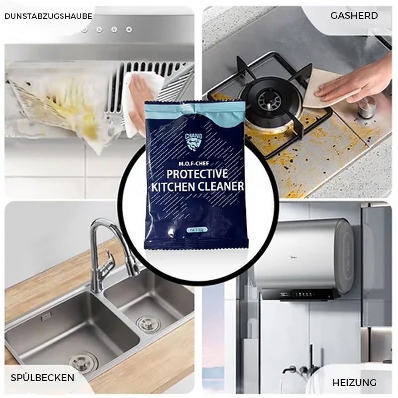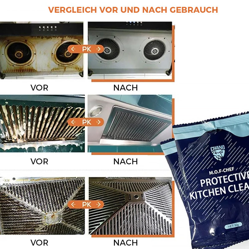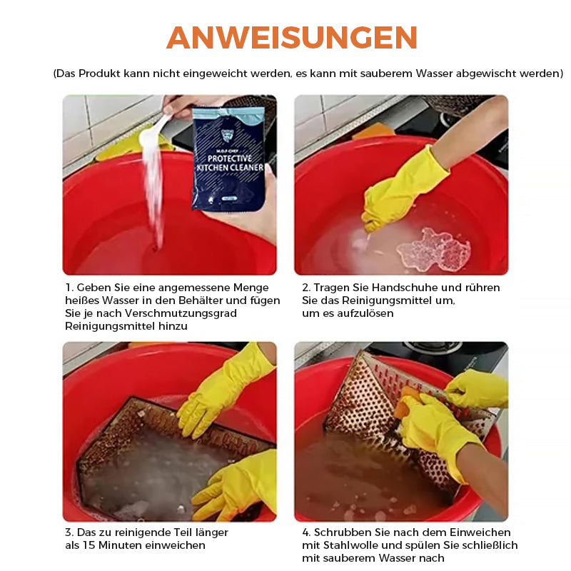 • Geeignet für starke Ölflecken auf mehreren Oberflächen in der Küche, wie z. B.: Dunstabzugshauben, Abzugsventilatoren, Gasherde, Öfen, Küchenglas, schwere Ölflecken auf Spülen.