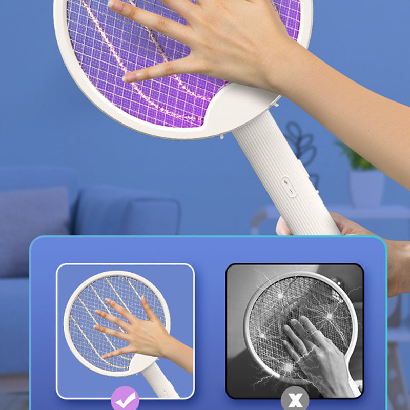 Sie können den Mückenschläger schwenken, um Fliegen zu töten, oder die UV-Lichter einschalten, die Mücken zum Elektroschocknetz locken.