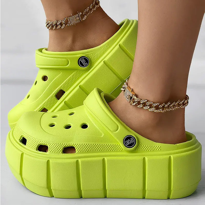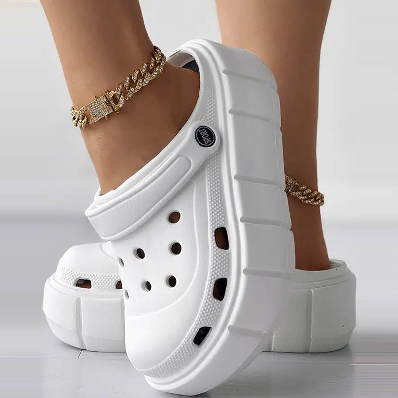 • Stilvolles und trendiges Design mit ausgehöhltem Plateau und Clog-Silhouette