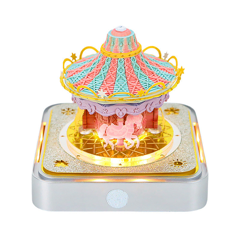 • Papier-Skulpturen-Kunst: Sorgfältig gefertigt, um den Charme eines Karussells mit der filigranen Kunst der Papierskulptur zu verbinden, präsentiert es eine detaillierte und fesselnde Szene.