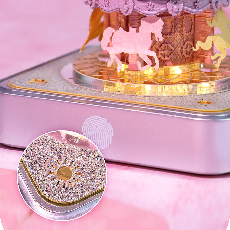 • Verwandlung in ein Nachtlicht: Verfügt über einen stufenlosen Touch-Schalter, der das Karussell mit einem sanften, farbenfrohen Leuchten erhellt und eine fantasievolle und romantische Atmosphäre schafft.
