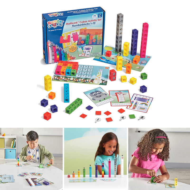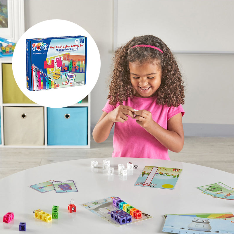 • Enthält 235 MathLink-Würfel, 20 MathLink-Würfel mit Doppelanschluss, 38 Frontplatten, 10 Nummern, 3 Zubehörteile, 1 Aufkleberbogen, 10 doppelseitige Aktivitätskarten, 10 Charakterkarten und einen Aktivitätsleitfaden.