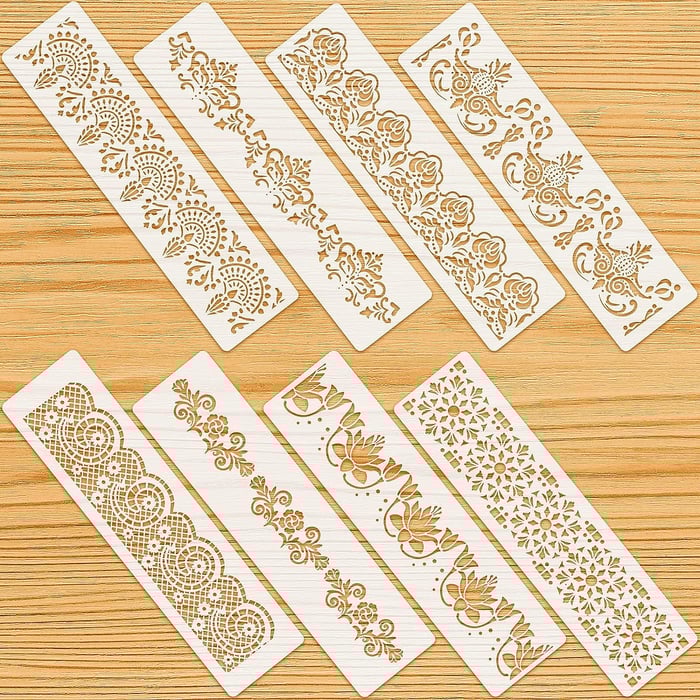 • Jede Packung enthält 8 kunstvolle Rand-Schablonen, jeweils 3 x 12 Zoll groß. Kombinieren Sie Muster nach Ihrem Stil und Ihrer Dekoration. Wählen Sie die Muster aus, die Sie möchten, und die Vielzahl an Schablonen ermöglicht es Ihnen, sie mit Freunden, Familienmitgliedern, Klassenkameraden oder Kollegen zu teilen.