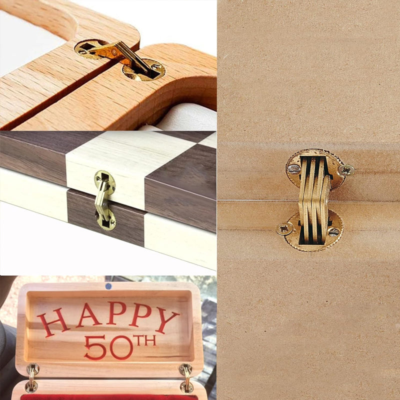 • 🛠️Vielseitige Nutzungsempfehlungen: Geeignet für Schmuckbox-Hardware, Klapptische, Schranktüren, Handwerksarbeiten, Weinkisten, kleine Möbel oder zur Verwendung an anderen Holz-, Kunststoff-, dicken Glasmaterialien; Nicht empfohlen für schwere Lasten.