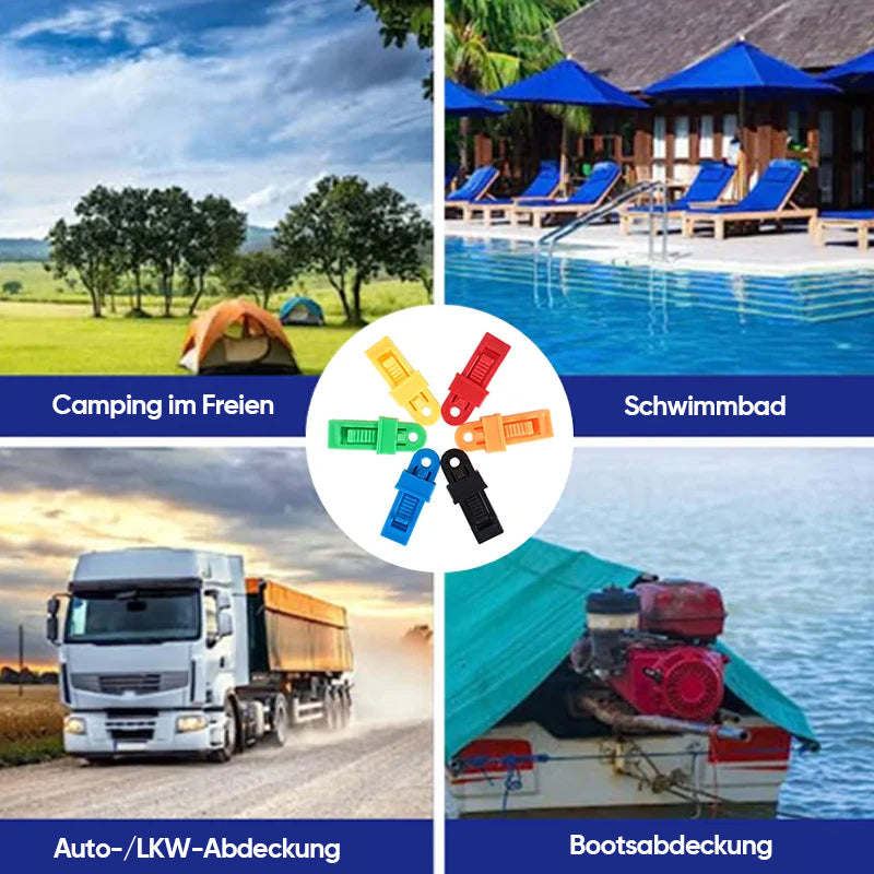 Aufgrund ihrer starken Haltekraft können die Clips in Markisen, Wohnwagen, Planen, Stöcken, Bootsabdeckungen verwendet werden, die für Camping im Freien, Segeln oder Picknicks geeignet sind.