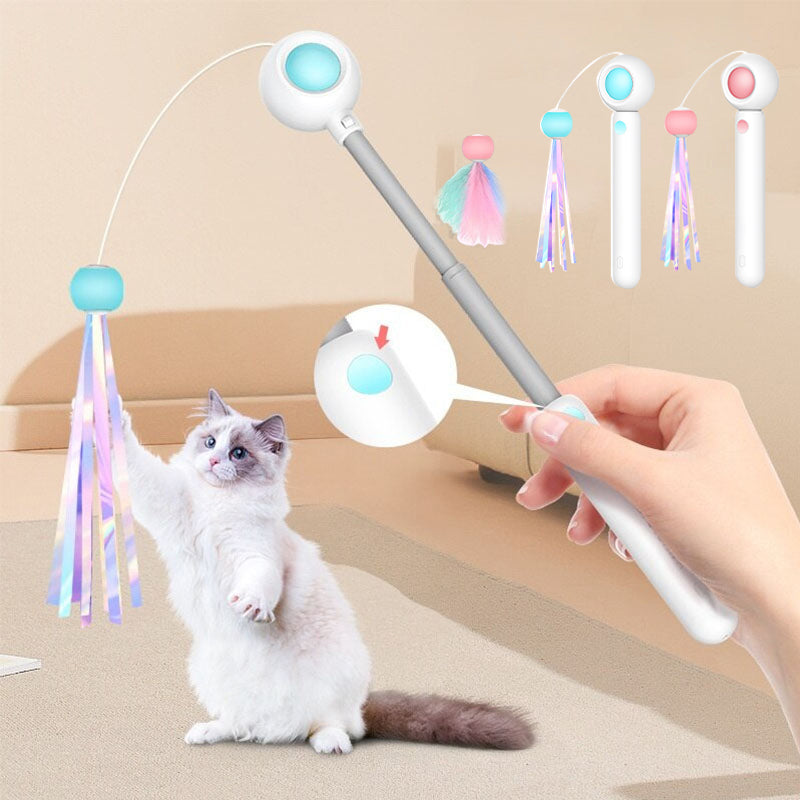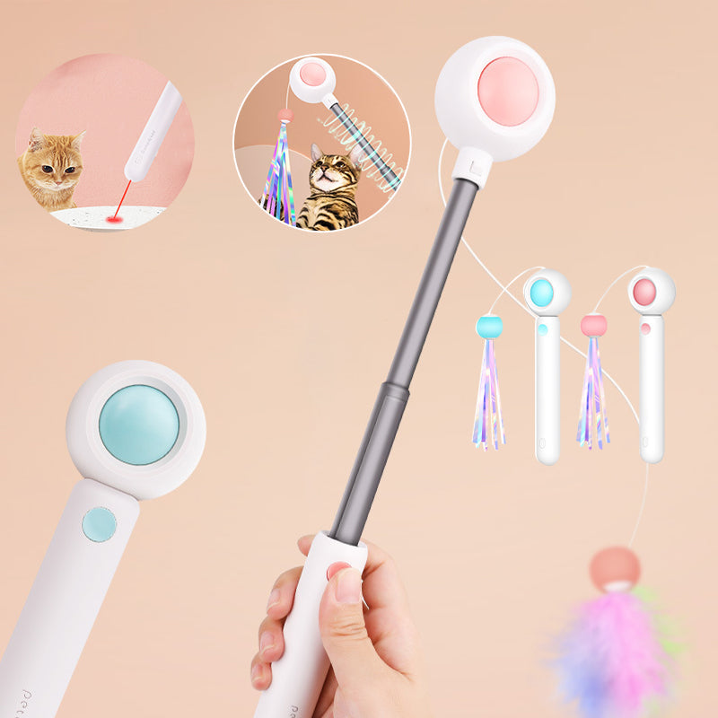 • 🐱 STRETCHABLE DESIGN - Dehnbare Stange und elastische Schnur, die leicht und einfach zu verstauen ist. Weil die Stange kompakt werden kann, sodass Sie sie einfach zu Hause oder in Ihrer Tasche verstauen können.
