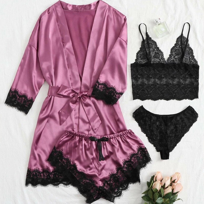 • Sexy Dessous Roben Sets (4 STÜCK) - Seidensatin-Nachtwäsche ist sehr bequem und leicht auf Ihrer Haut, lockere Roben lassen Sie sich frei fühlen, geben Ihnen eine entspannte Nacht. Diese durchsichtige Nachtwäsche aus Spitze zeigt Ihre sexy und feminine und macht Sie attraktiver für Ihren Liebhaber.