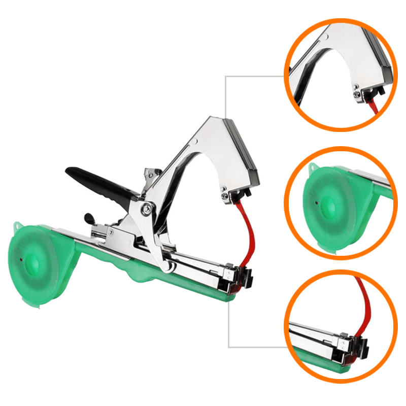 • Lätt att använda: Du kan först dra ut bandet och sedan sätta grenen i bandet, trycka ner och släppa bindningsmaskinen. Paketera dina växter på ett effektivt sätt.