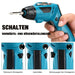 • Wiederaufladbarer Akku: Diese Bohrmaschine wird von einem wiederaufladbaren Akku betrieben und ermöglicht so den bequemen Einsatz in jeder Position. Der Akku ist langlebig und schnell aufladbar.
