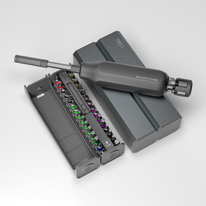 • Schraubendreherbits können einfach eingesetzt und entfernt werden